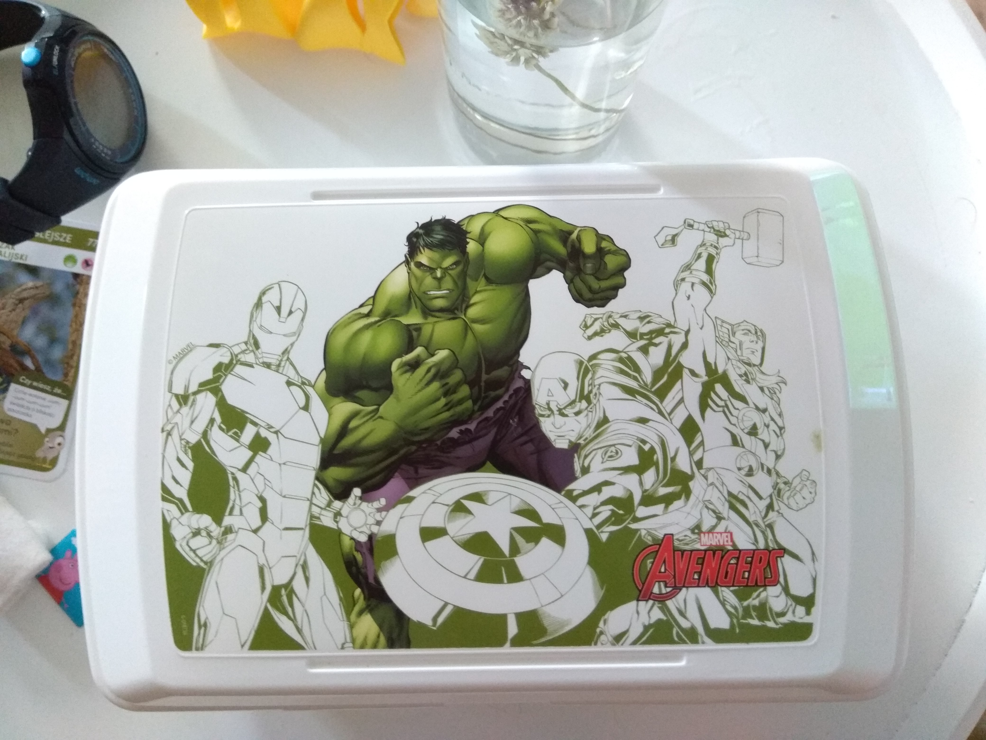 Dziś cały ten magiczny proces został zamknięty w jednej rzeczy. W białym, prostym, plastikowym pudełku na kanapki do pracy. Sama je wybrała mijając sklepową półkę. Na pudełku jest motyw Avengers. Najbardziej wyrazista postać na obrazku to Hulk. Wielki, zielony, nieobliczalny. Stwór, na którego natknęła się kiedy oglądałem tv. Postać od razu zaszufladkowana przez nią jako ten zły: bo ksycy, robi “arrrgh”, niscy i bije robociki. Tamtego dnia mogłem wyłączyć tv. Powiedzieć, że to film dla dorosłych. Wysłać ją do pokoju niech się bawi. Zamknąć temat. I zostawić malucha z błędnie wyrobioną opinią.